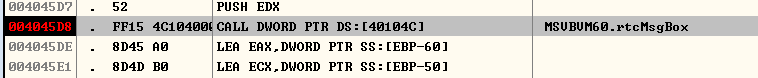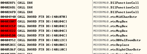 마지막에 004046BF주소의 vbaHresultCheckObj에서 호출된걸 알 수 있다 저기 주소로 가보면
