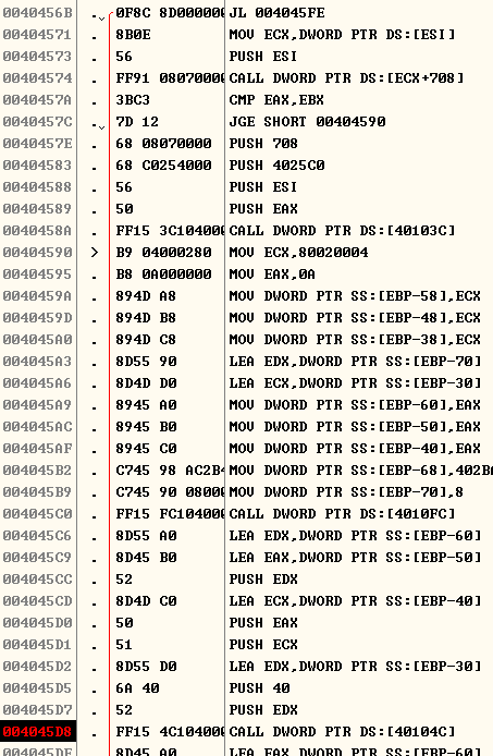 그러면 저 주소로 안가게 해야하는데 위로 좀 가보면은 JL 004045FE가 있다.