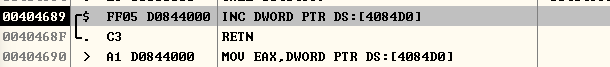 그러고 F7로 천천히가보면은 404689부분에서 4084D0값에 1을 더해주는 작업을 두번 해준다.