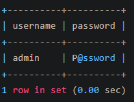 admin계정의 비밀번호 첫자리가 P이니깐 admin계정 정보가 출력될것이다.