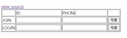 <tr><td>JOIN</td><td><input name=id></td><td><input name=phone></td><td><input type=submit></td></tr>