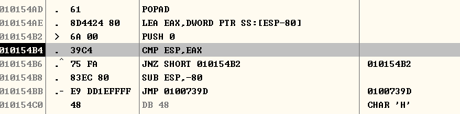 그다음에 나타나는 JMP 코드를 찾으면 OEP를 쉽게 얻을 수 있다.