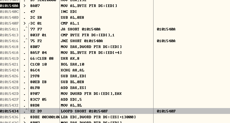 원본 코드의 CALL/JMP 명령어의 destination 주소를 복원 시켜주는 코드이다.