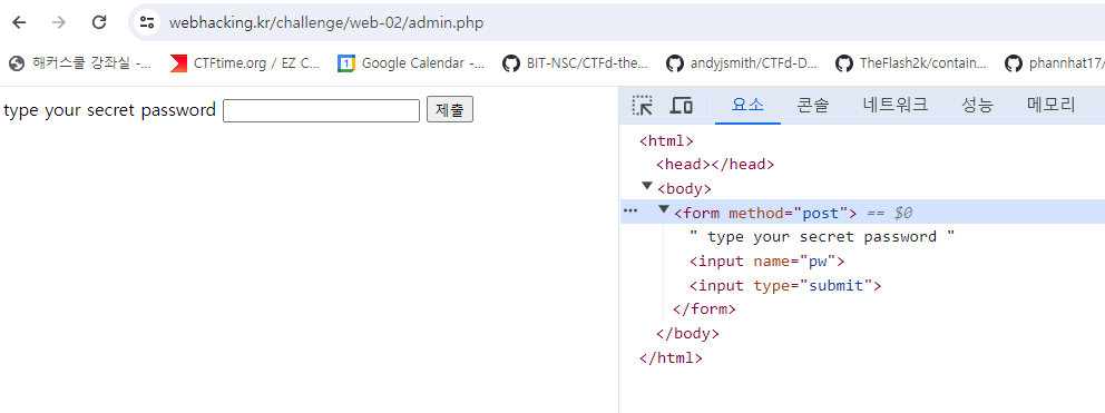 이렇게 알아낸 pw를 admin.php에 넣어주면 풀린다.