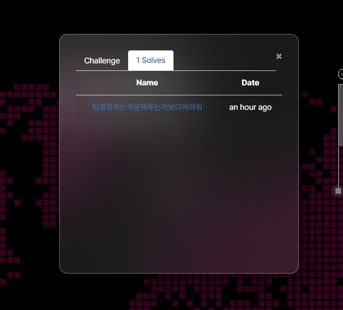 잠시 한탄을 하자면 본선에서 웹 3문제가 나왔는데 젤 어려운 문제를 처음부터 잡아서 나머지 웹이나 Misc 문제를 별로 못본게 너무너무 아쉽다.