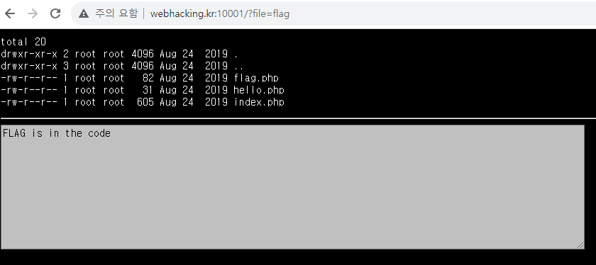유추해 볼 수 있는점은 .php가 자동으로 붙는다는 점이고 flag.php의 내용을 파악해야 한다는 점이다.